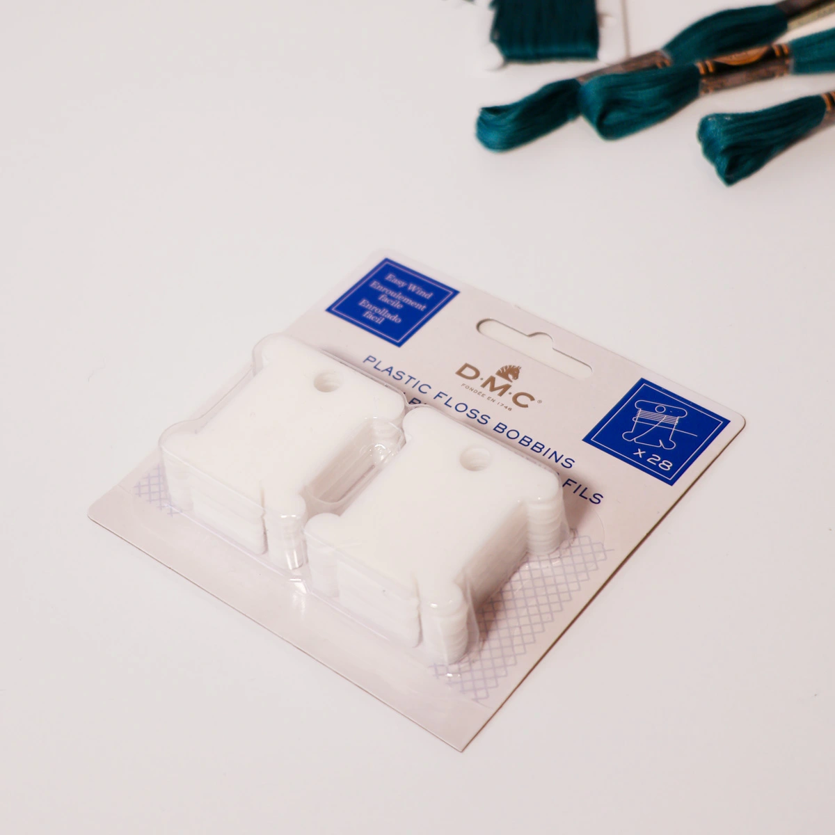 Set of 28 sturdy plastic bobbins that keep your threads organized and close at hand.