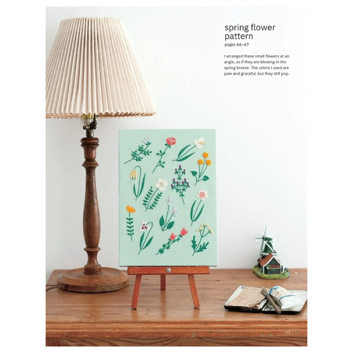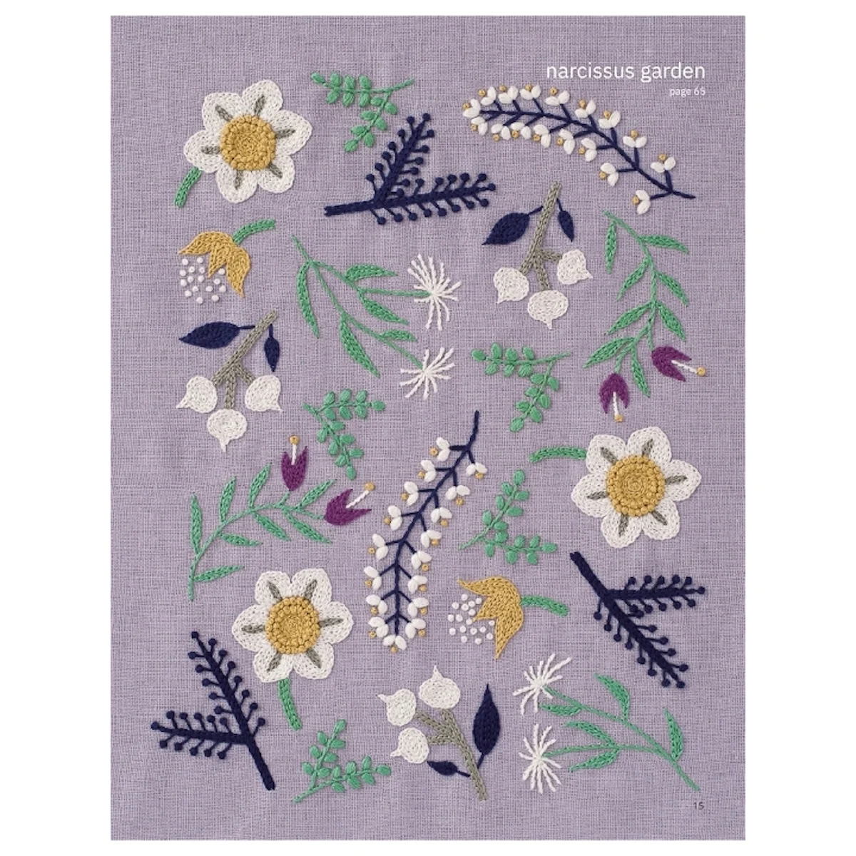 Livro com bordados contemporâneos e sazonais. Inclui guia de pontos, referências de cores DMC e padrões prontos a usar. Em inglês.