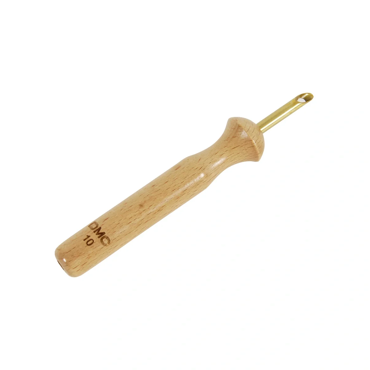 Agulha de tamanho 10, com cabo de madeira e ponta em aço inoxidável de 3,5 mm.