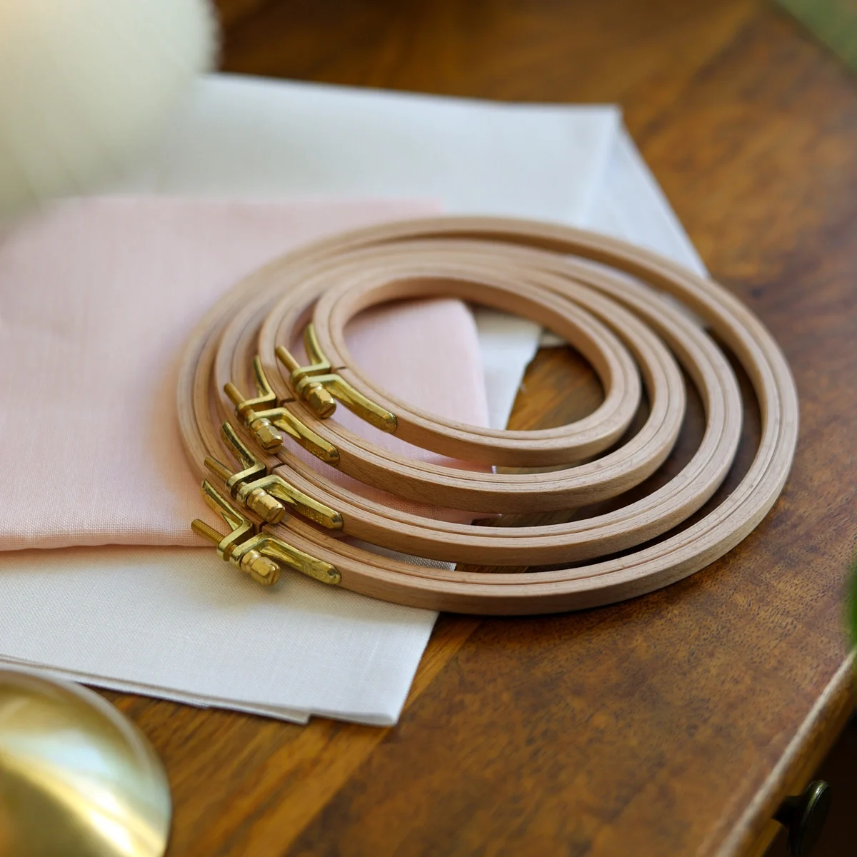Sabem quando passamos os dedos por algo e sentimos a qualidade do material? É o que acontece aqui: a madeira de faia finamente lixada e macia, as ferragens em latão polido de acabamento elegante dão-nos vontade imediata de pegar na agulha e bordar. Ao contrário de outros bastidores baratos em bambú, são mais grossos (8 mm), prendendo assim melhor o tecido. Além disso, fazem-se ver em qualquer parede ou prateleira.