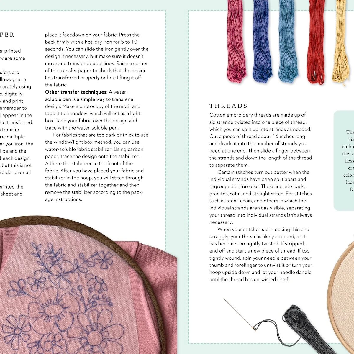 Livro com projetos florais e contemporâneos, inclui guias de pontos, paletas DMC e padrões prontos a bordar. Em inglês.