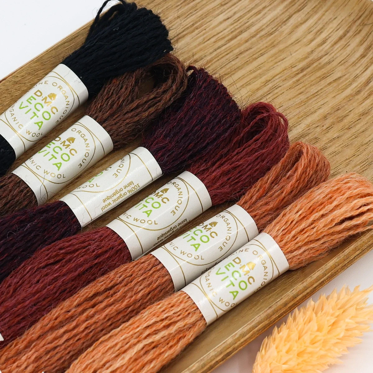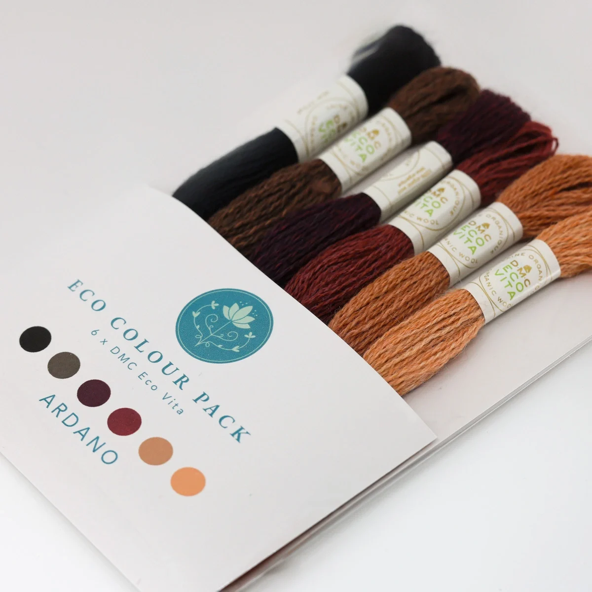 Se queres marcar a diferença, os Eco Colour Packs são para ti: conjuntos únicos de 6 meadas do fio DMC Eco Vita, 100% lã orgânica, tingidas exclusivamente com corantes naturais como noz, índigo, ruiarbo e zimbro.