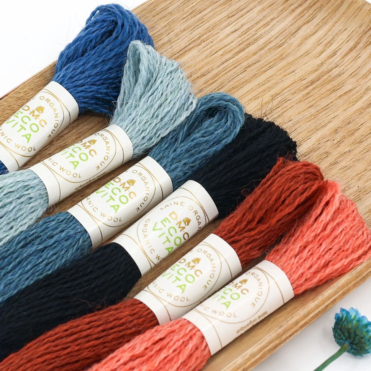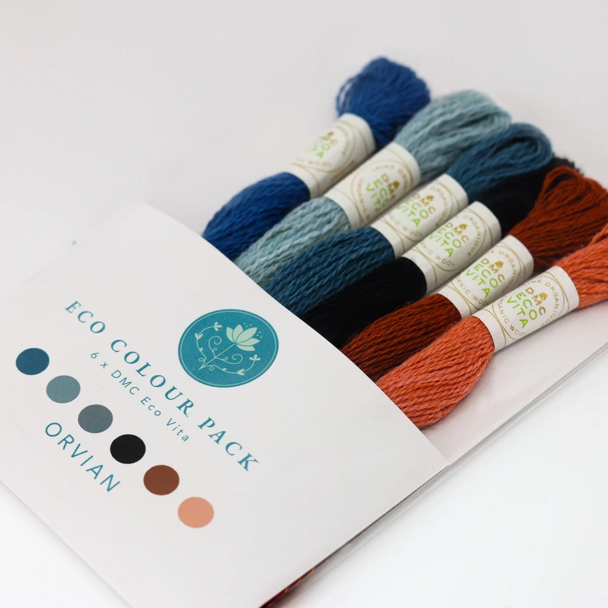 Se queres marcar a diferença, os Eco Colour Packs são para ti: conjuntos únicos de 6 meadas do fio DMC Eco Vita, 100% lã orgânica, tingidas exclusivamente com corantes naturais como noz, índigo, ruiarbo e zimbro.