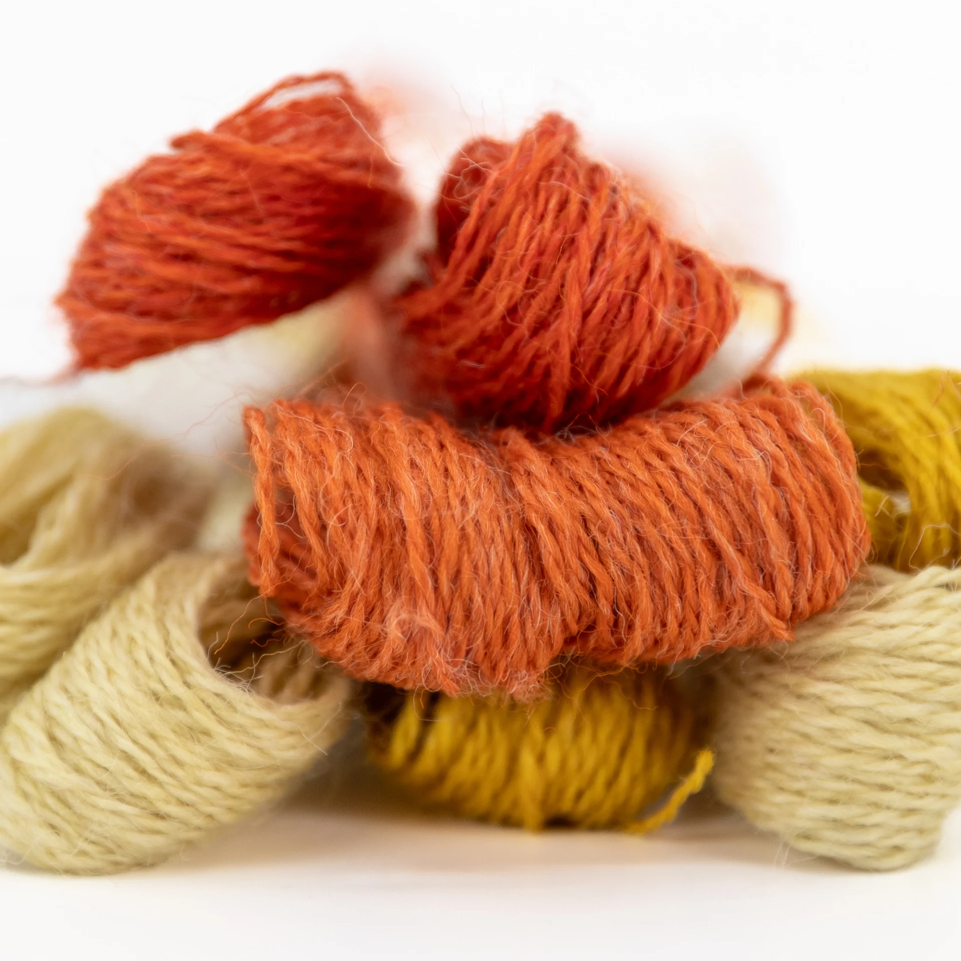Fio de bordar de lã orgânica DMC Eco Vita, em meadas de 16 m, tons amarelo e laranja