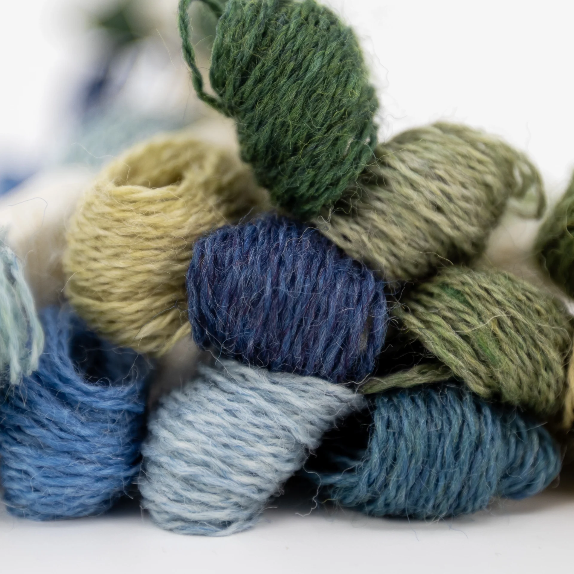 Fio de bordar de lã orgânica DMC Eco Vita, em meadas de 16 m, tons verdes e azuis
