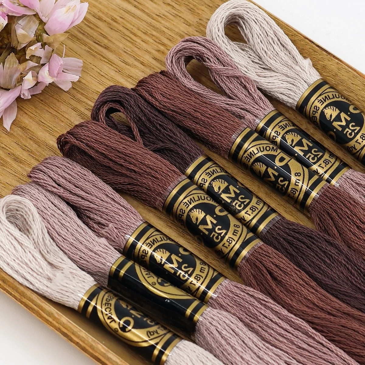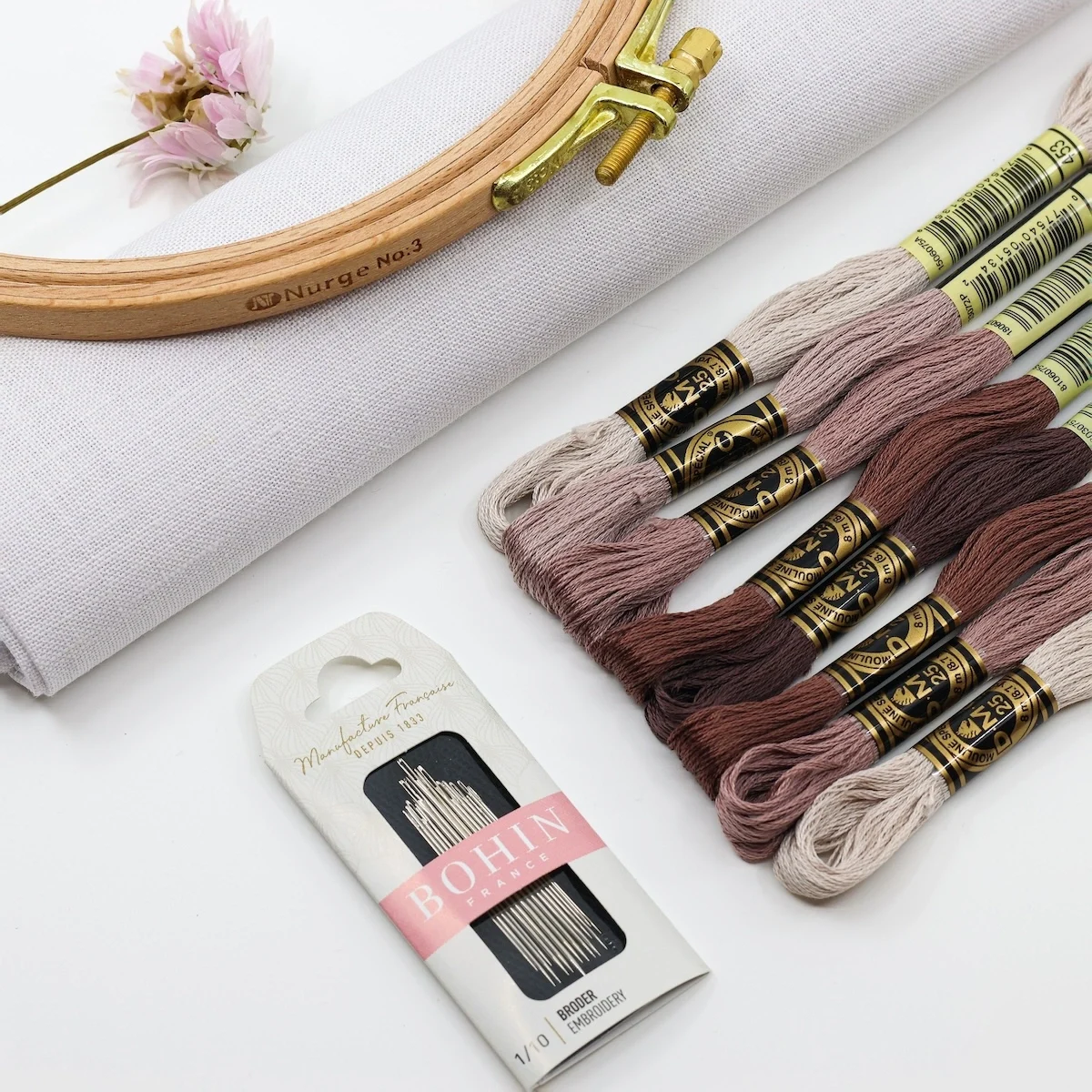 Um recorte de linho numa cor que entra em perfeita sintonia com o conjunto de 8 meadas DMC Mouliné Spécial;