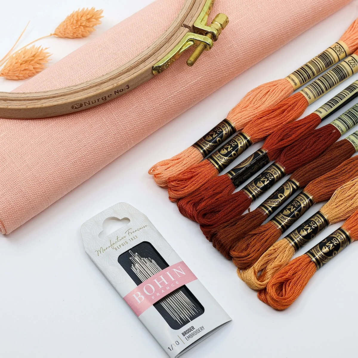 Um recorte de linho numa cor que entra em perfeita sintonia com o conjunto de 8 meadas DMC Mouliné Spécial;