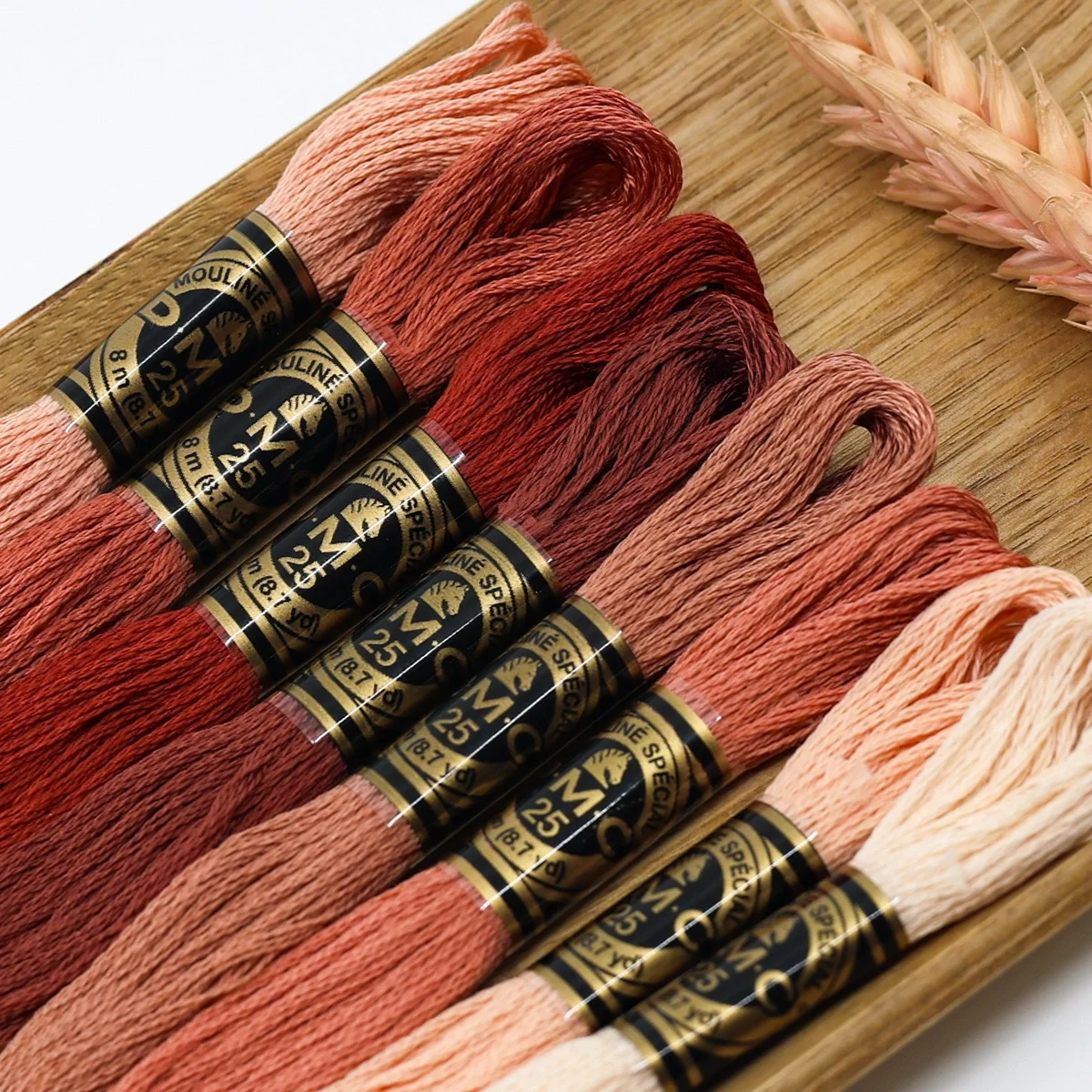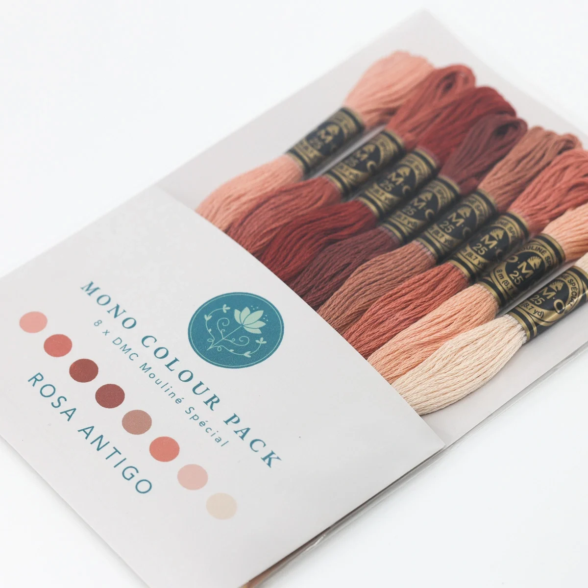 Este Mono Colour Pack foi criado para ti: uma combinação elegante de 8 meadas DMC Mouliné Spécial, todas dentro do mesmo matiz, com variações tonais que criam profundidade e harmonia no teu bordado.