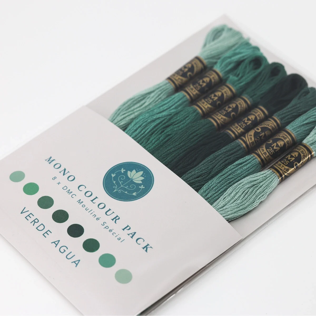 Este Mono Colour Pack foi criado para ti: uma combinação elegante de 8 meadas DMC Mouliné Spécial, todas dentro do mesmo matiz, com variações tonais que criam profundidade e harmonia no teu bordado.