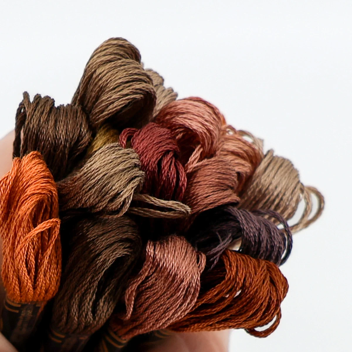 Fio de algodão egípcio DMC Mouliné Spécial para bordado à mão, em meada de 8 m, tons castanhos