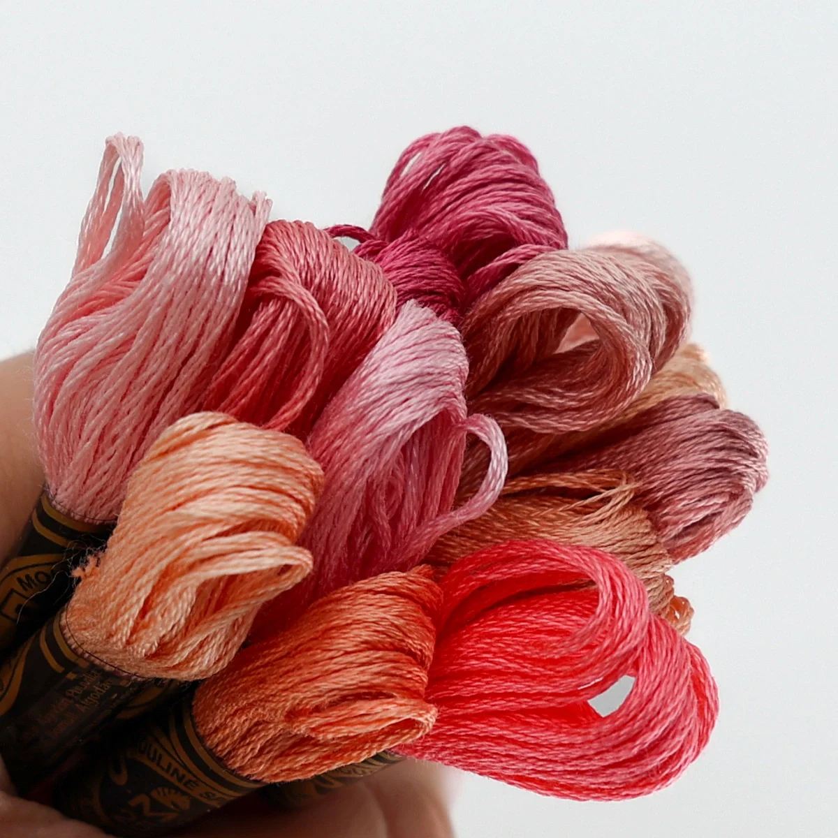 Fio de algodão egípcio DMC Mouliné Spécial para bordado à mão, em meada de 8 m, tons rosa
