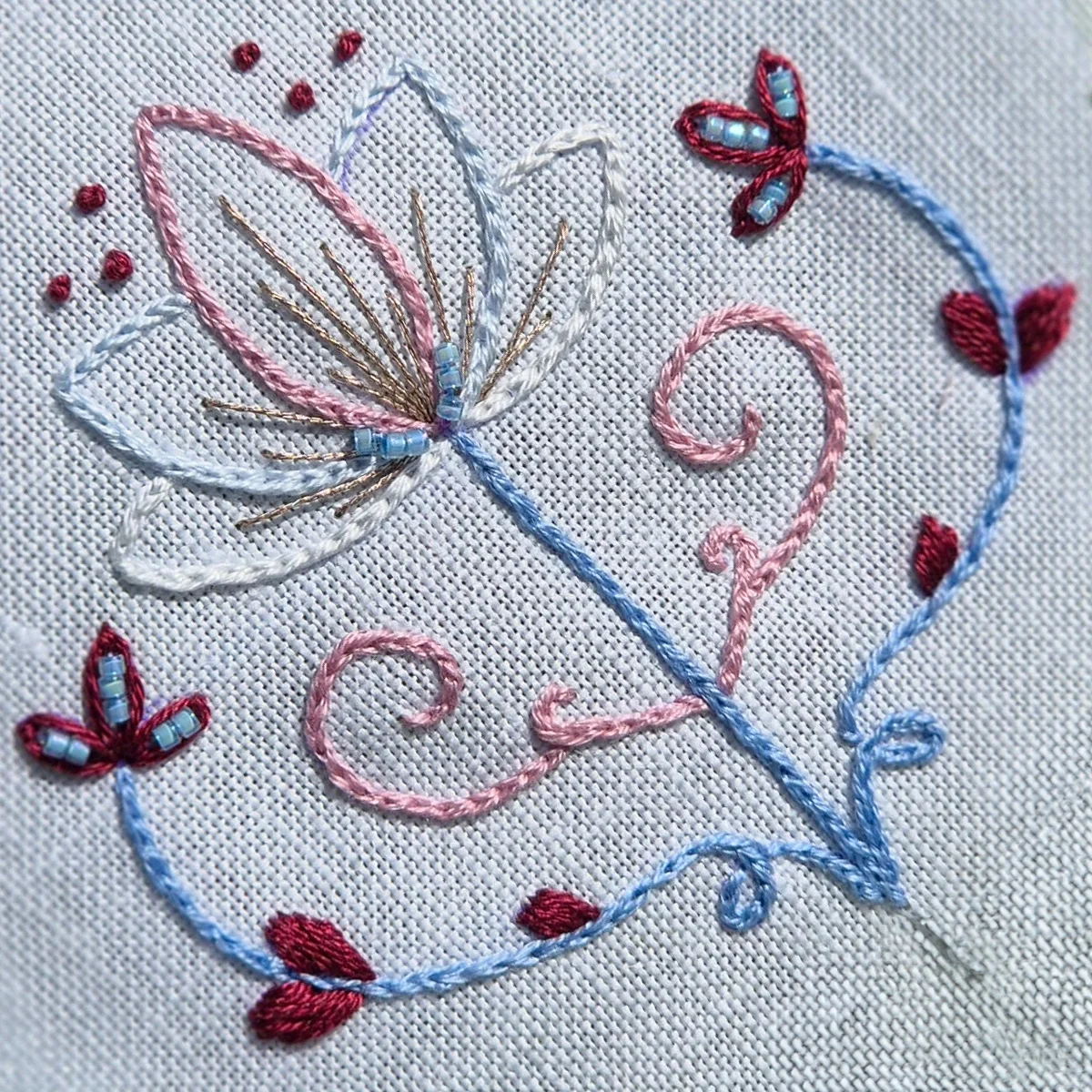 Uma seleção que combina vermelhos rosados, tons nude, branco puro e azuis clarinhos – perfeita para bordados românticos e cheios de leveza.