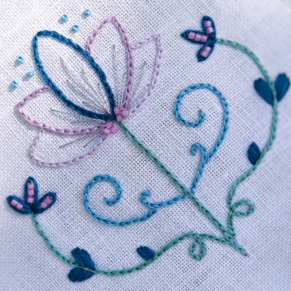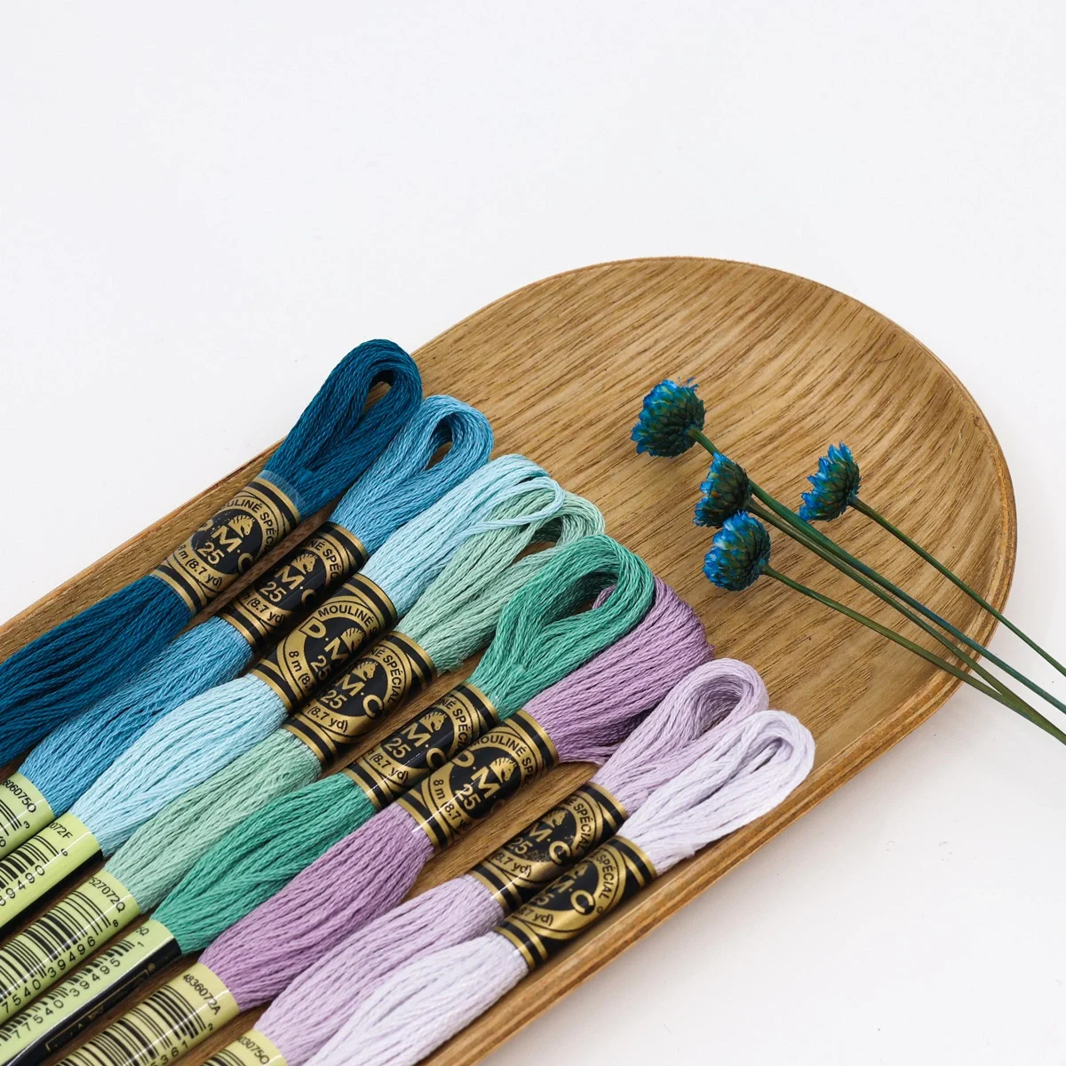 Uma paleta etérea que evoca o mundo das sereias – azuis profundos, verdes água e lilases suaves. Perfeita para bordados fluidos, luminosos e cheios de encanto oceânico.