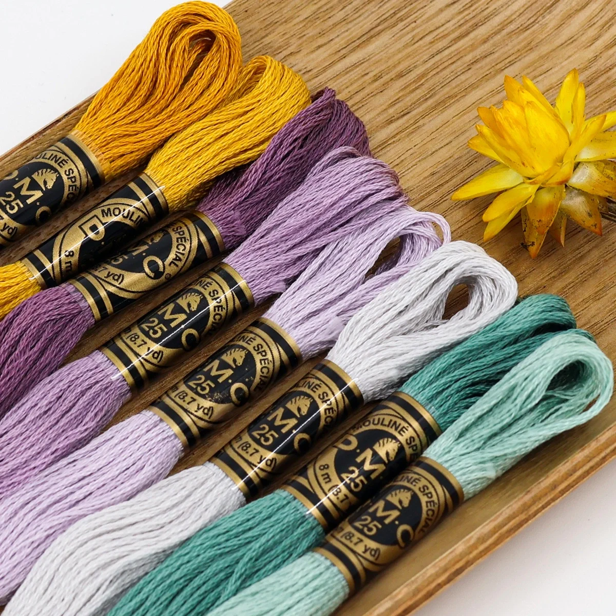Esta seleção combina amarelos vibrantes, lilases delicados, branco puro e verdes frescos — perfeita para bordados florais, leves e cheios de contraste suave.
