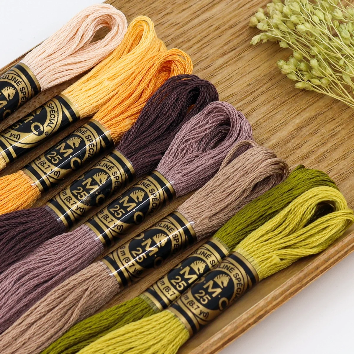 Uma paleta cativante que combina amarelos quentes, castanhos suaves e verdes vibrantes — perfeita para bordados naturais, acolhedores e cheios de textura.
