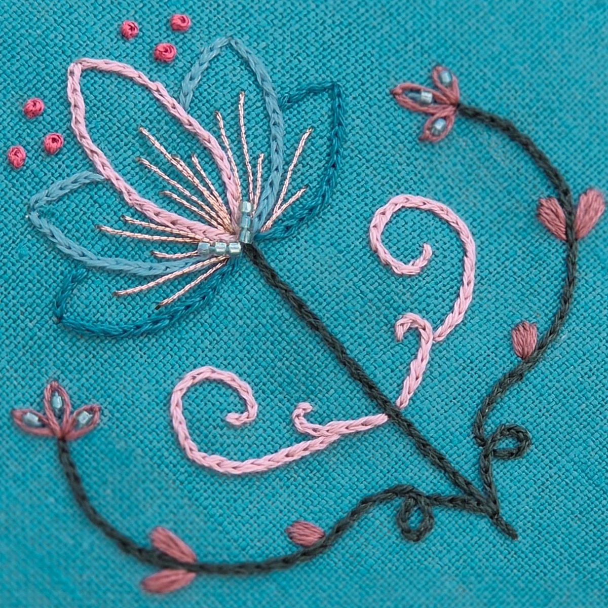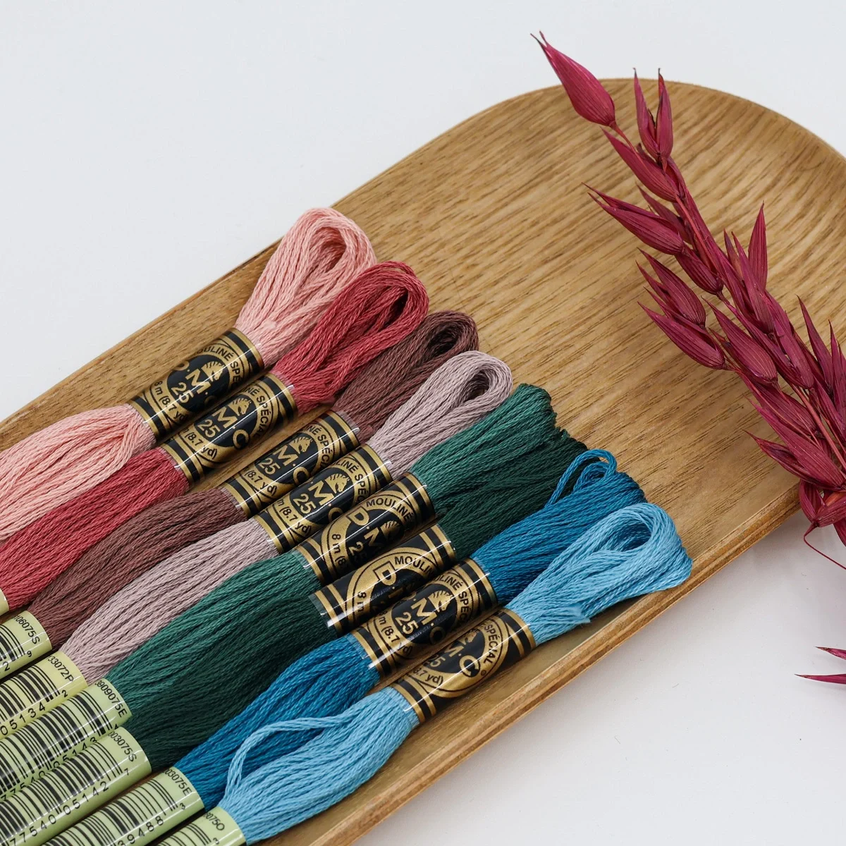 Uma paleta rica que combina tons quentes, verdes profundos e azuis petrolados – perfeita para bordados envolventes e cheios de contraste elegante.