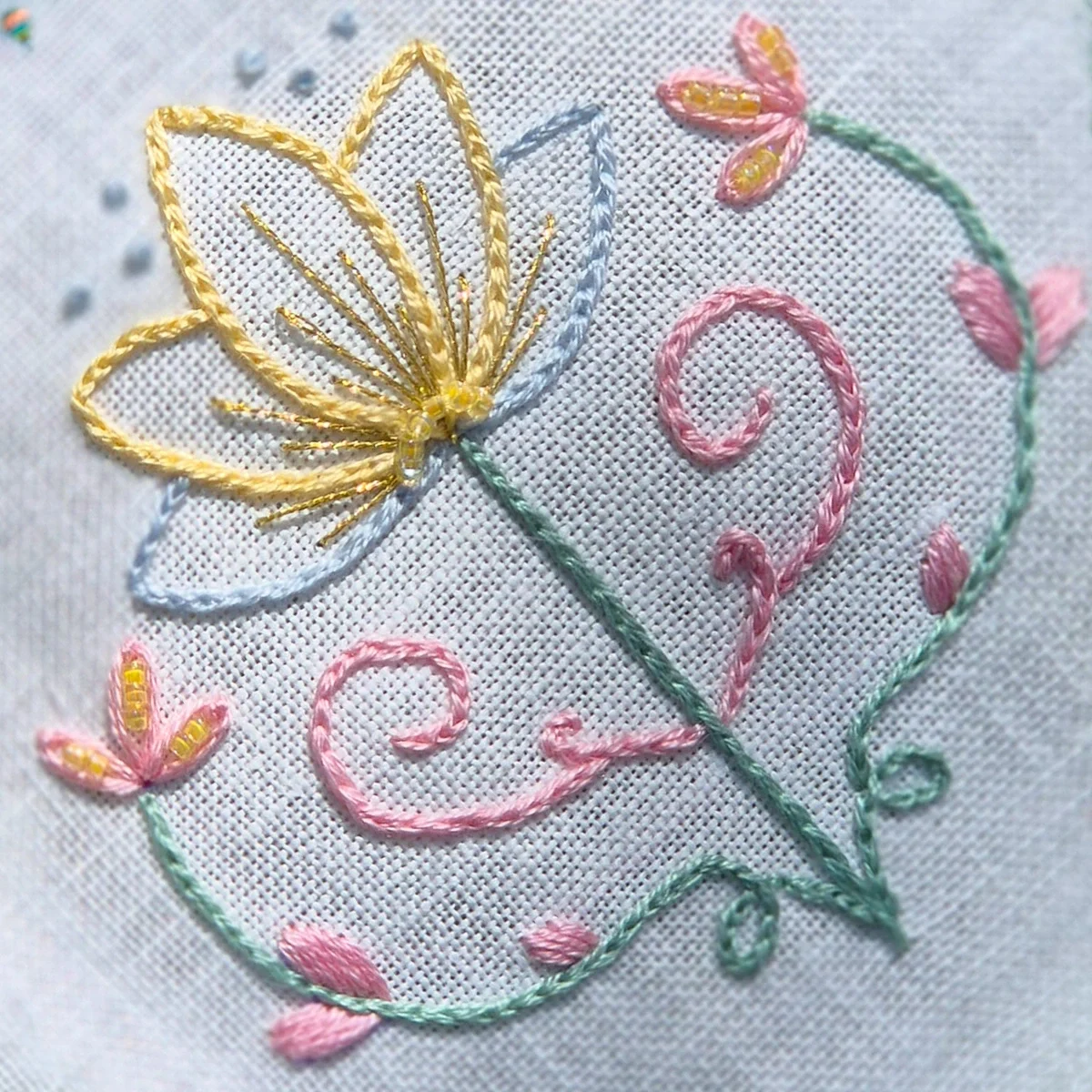 Uma paleta pastel luminosa que combina lilases, rosas suaves, verdes menta, azuis claros e amarelos delicados — perfeita para bordados leves, frescos e cheios de doçura primaveril.
