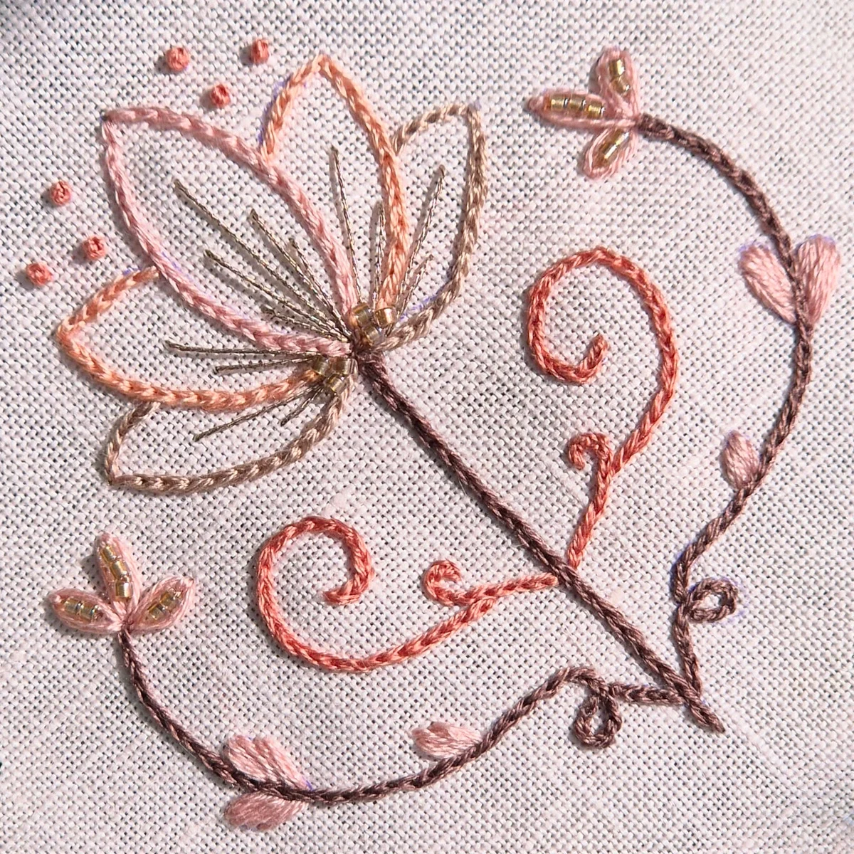 Uma paleta de rosas antigos com nuances acastanhadas – tons suaves, envelhecidos e cheios de profundidade – perfeita para bordados delicados e nostálgicos.