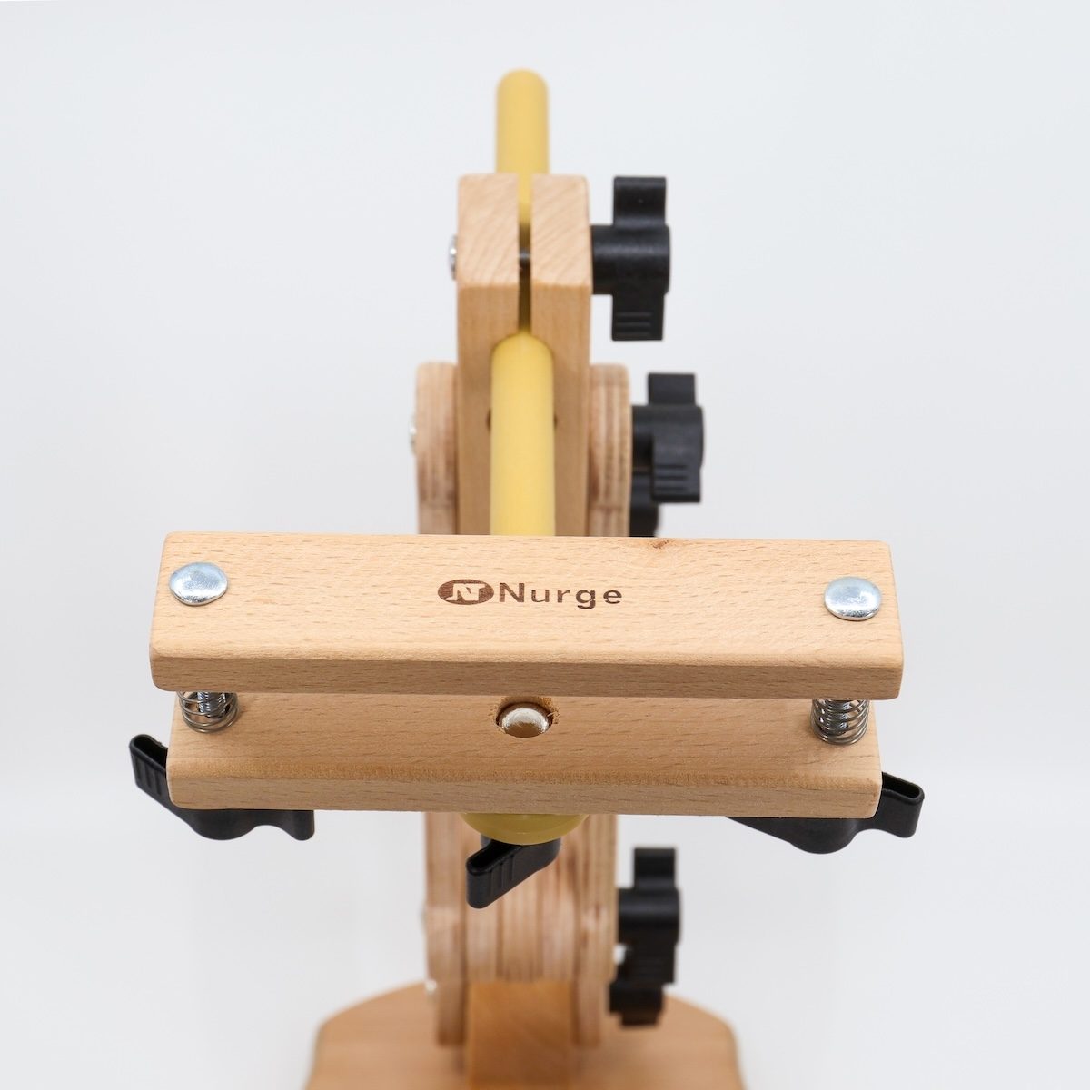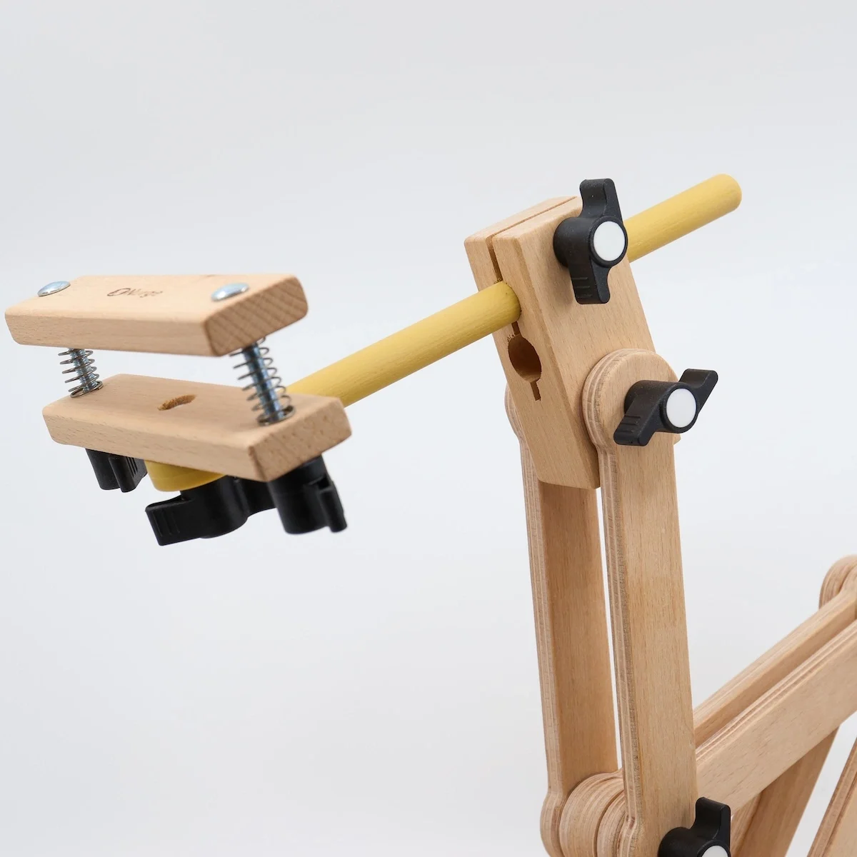 Este lifesaver da Nurge é feito em madeira maciça e tem 5 pontos de articulação. A base larga e sólida oferece estabilidade e permite-te bordar à mesa ou sentada no sofá, prendendo-o debaixo das pernas. O destaque especial vai para o grampo: segura firmemente bastidores mais largos, oscila e roda a 360° (dando acesso imediato à parte de trás do bordado).