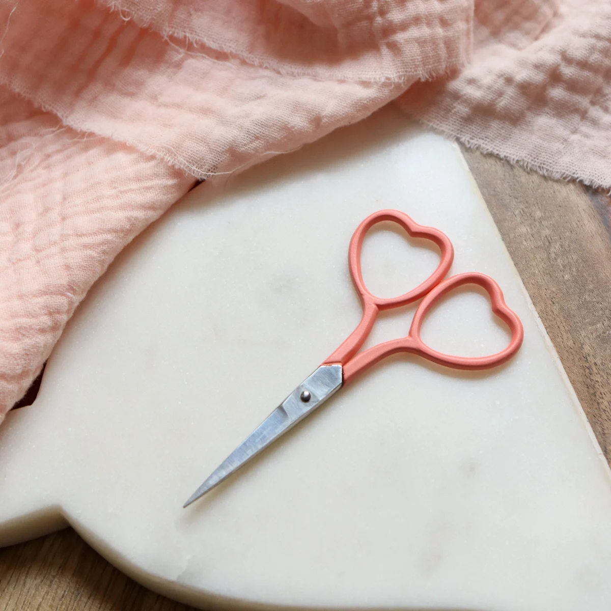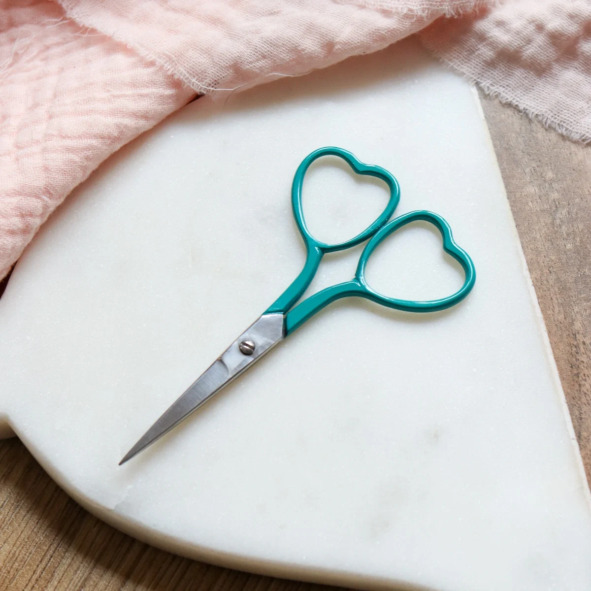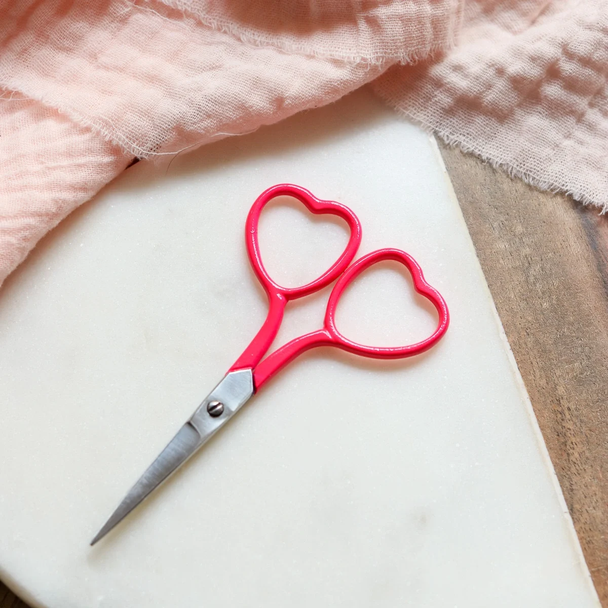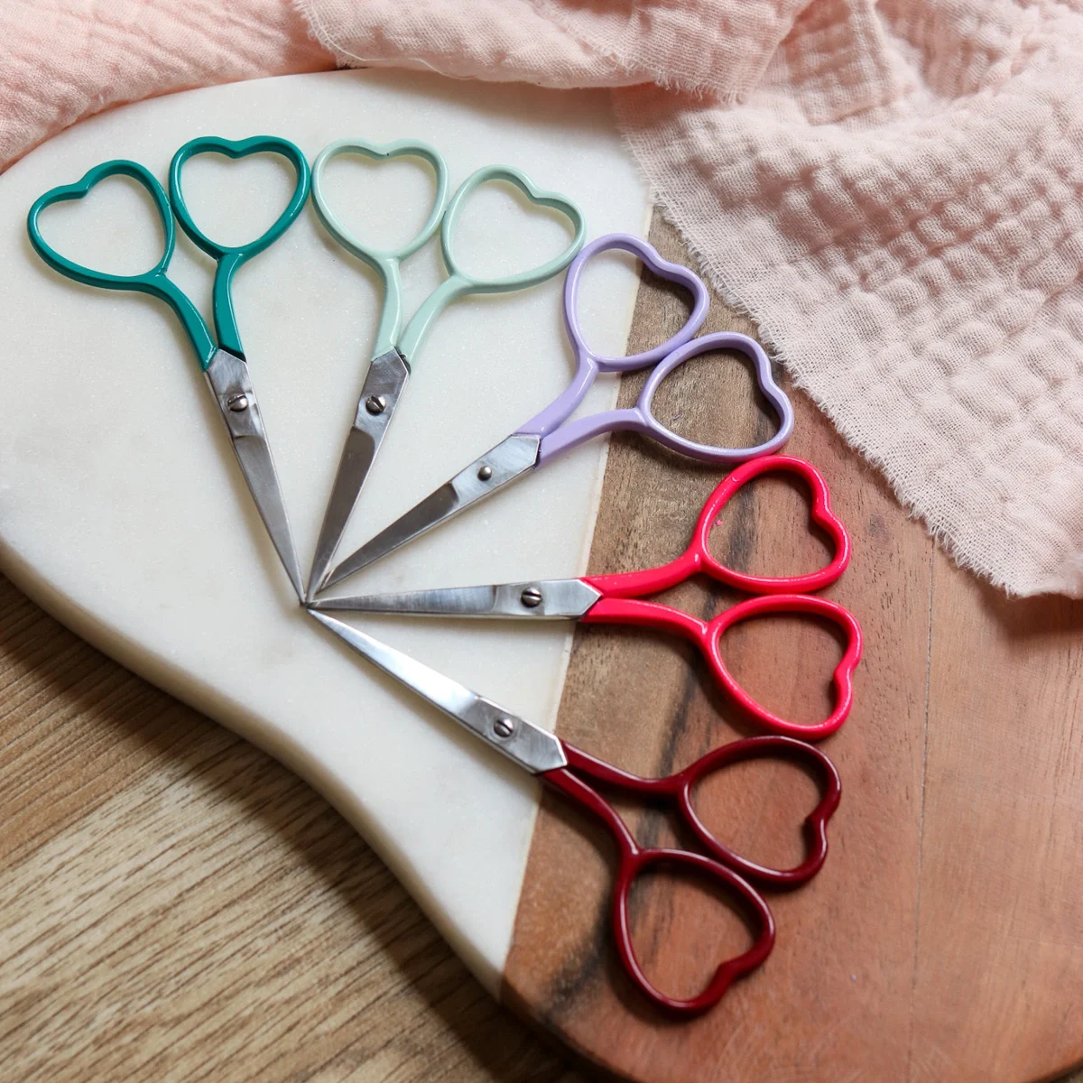 A marca francesa Lise Tailor é excelente em criar produtos que fazem acelerar a pulsação a nós bordadeiras e apresenta estas lindas tesouras com pegas em forma de coração. Mas não se deixem enganar pela sua fofura: isso não as impede de cumprirem a sua função e cortar fios com toda a precisão.